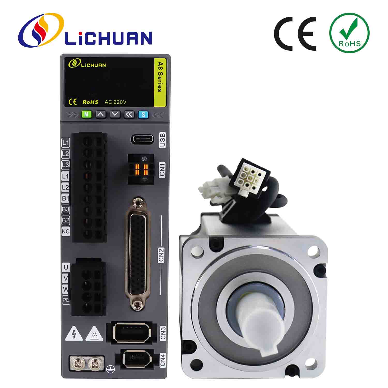 | Táirge | Lichuan A8 Cruinneas Ard STO ABZ AC Servo Motor Tiománaithe Kit |