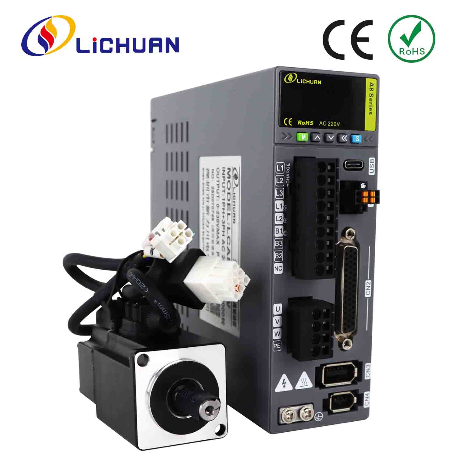 Kit Tiománaithe Mótair Lichuan AC Servo A8 Cruinneas Ard STO ABZ 200W 0.637N.m 220V 1.6A 3000RPM IP65