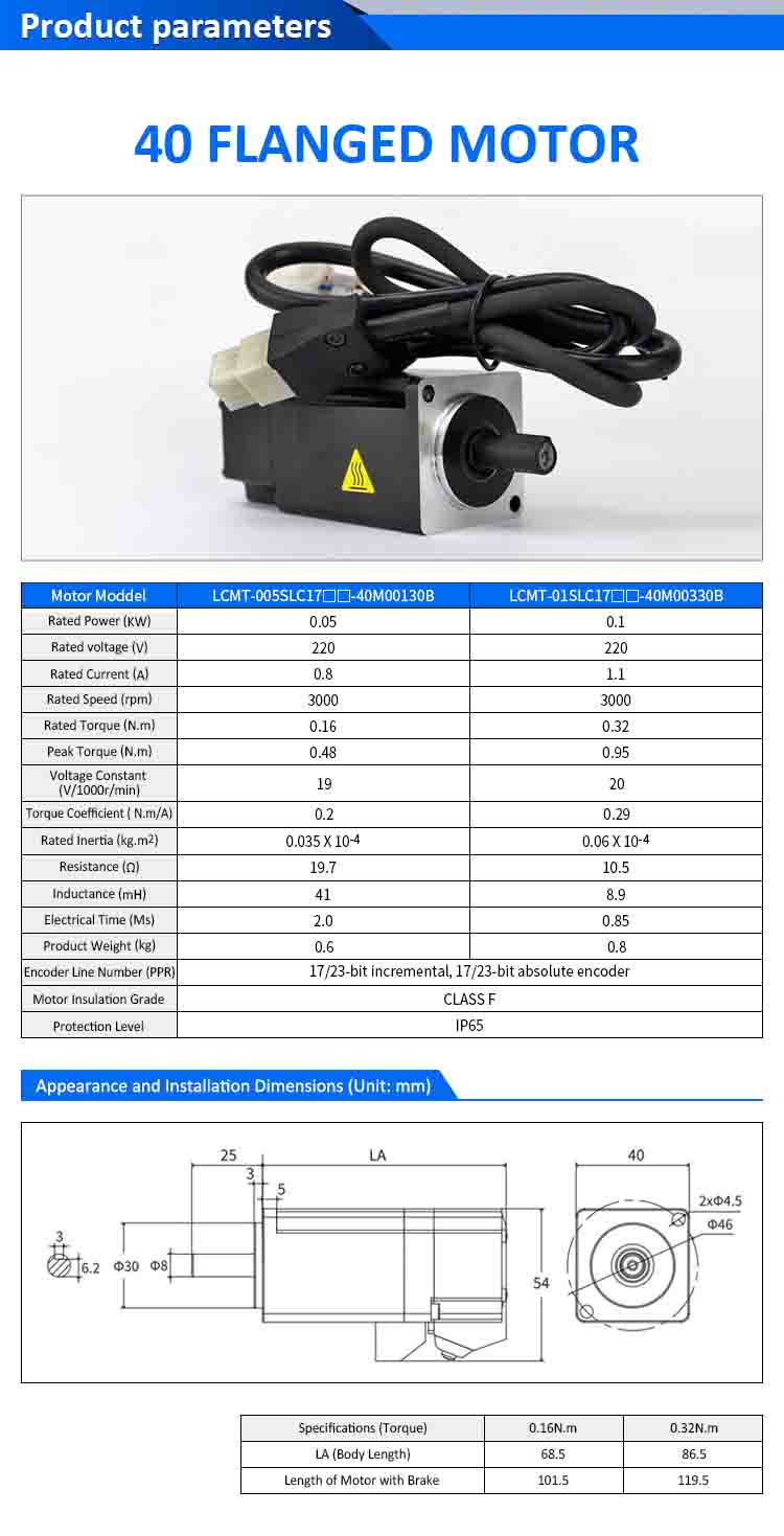 | Model mótair | LCMT-005SLC17-40M00130B | LCMT-01SLC17-40M00330B |