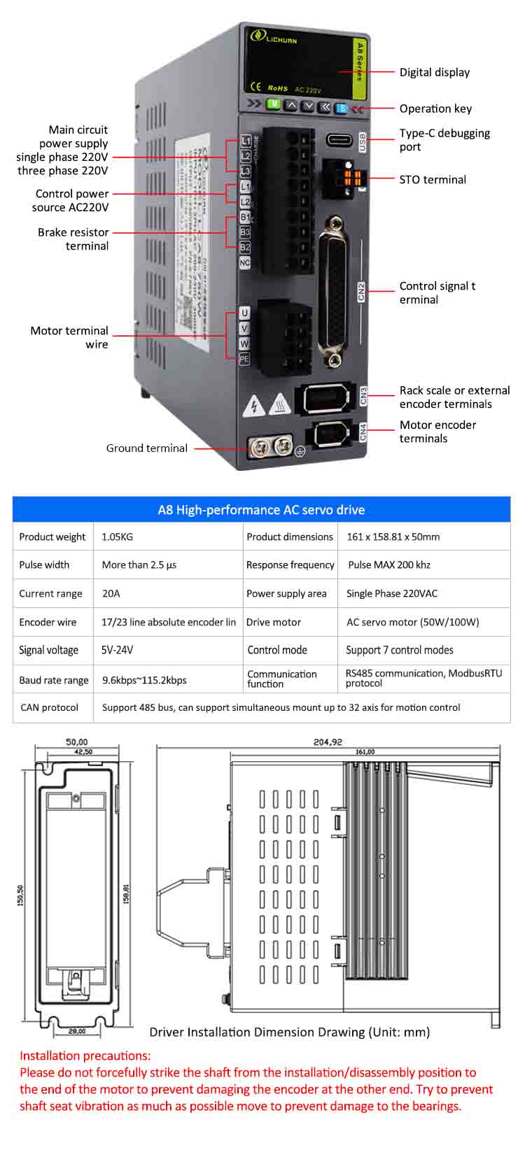 Innealtóireacht le haghaidh iontaofacht fhadtéarmach, anLichuan A8 Cruinneas Ard STO ABZ AC Servo Motor Tiománaithe KitAithnítear go forleathan as a chomhoiriúnacht láidir, a oibriú rianúil, agus a gcóimheas costais-fheidhmíochta níos fearr.