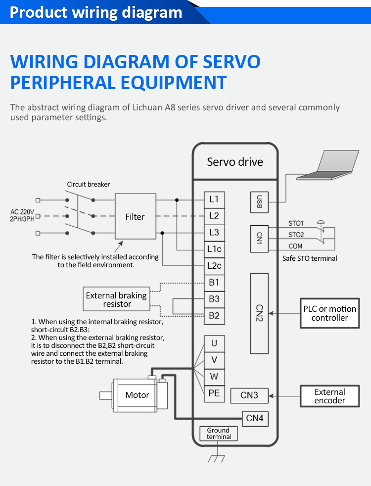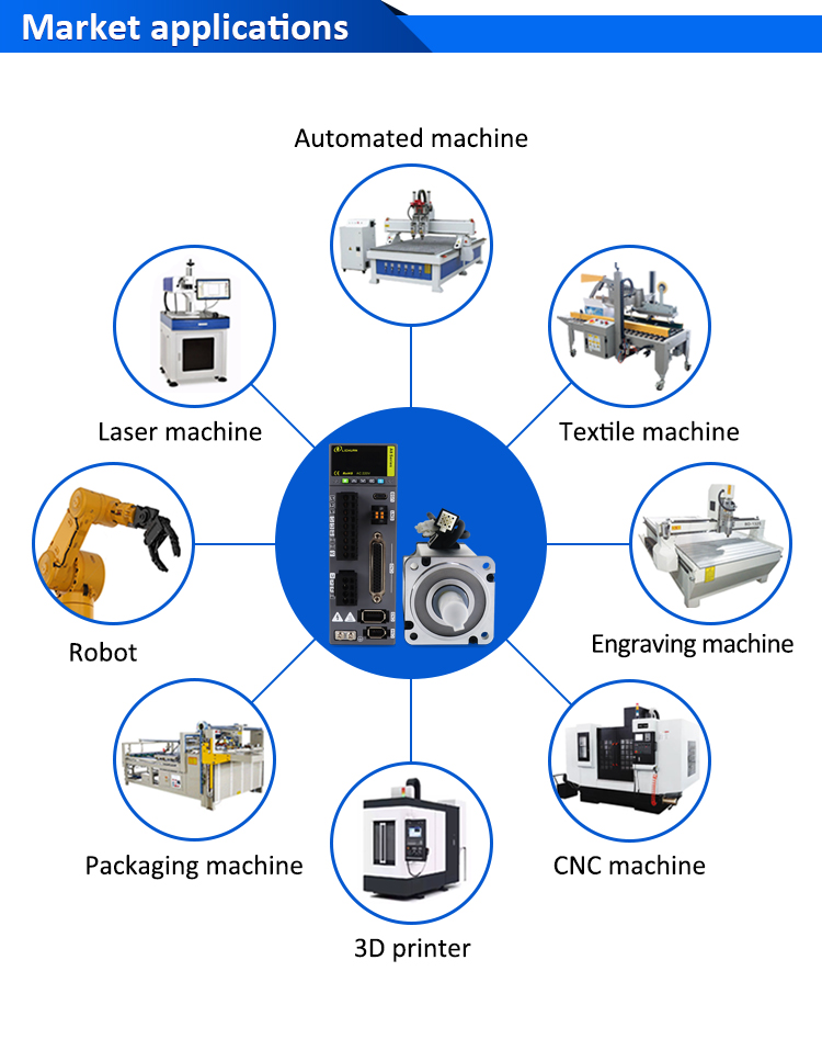 Is tiomáint servo AC ardfheidhmíochta í an tsraith seo le feidhm múchadh chasmhóiminte sábháilteachta STO (Safe Torque Off), a chomhlíonann caighdeán sábháilteachta IEC 61800-5-2 agus is féidir múchadh sábháilte a bhaint amach i gcás éigeandála. Tacaíonn an córas le modh rialaithe lúb dúnta iomlán, agus baintear amach cruinneas suímh ± aon chuisle trí aiseolas ionchódóra ardtaifigh, atá ag luí le mótair rothlacha agus cásanna iarratais mótair líneacha. Tá sé feistithe le comhéadan dífhabhtaithe Cineál-C, tacaíonn sé le cumraíocht pharaiméadar fíor-ama, agus tá comhéadan cumarsáide RS485 ionsuite aige (prótacal Modbus RTU), agus is féidir an ráta baud a choigeartú ó 9.6kbps ~ 115.2kbps. Glacann sé an algartam rialaithe treoshuímh réimse maighnéadach (FOC), atá oiriúnach le haghaidh ócáidí freagartha ard-dinimiciúil mar CNC cruinneas agus trealamh leathsheoltóra.