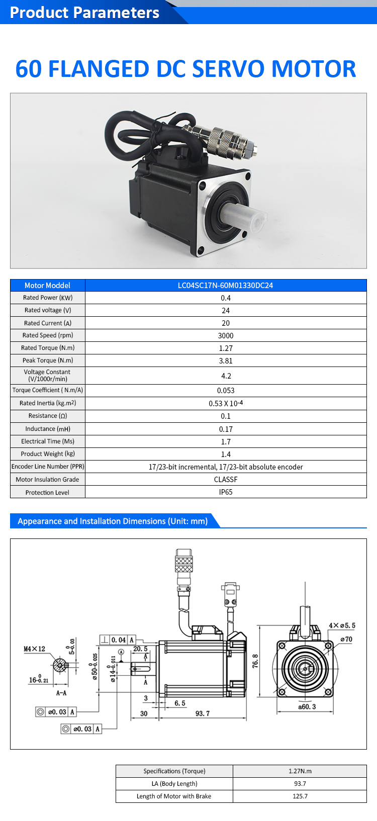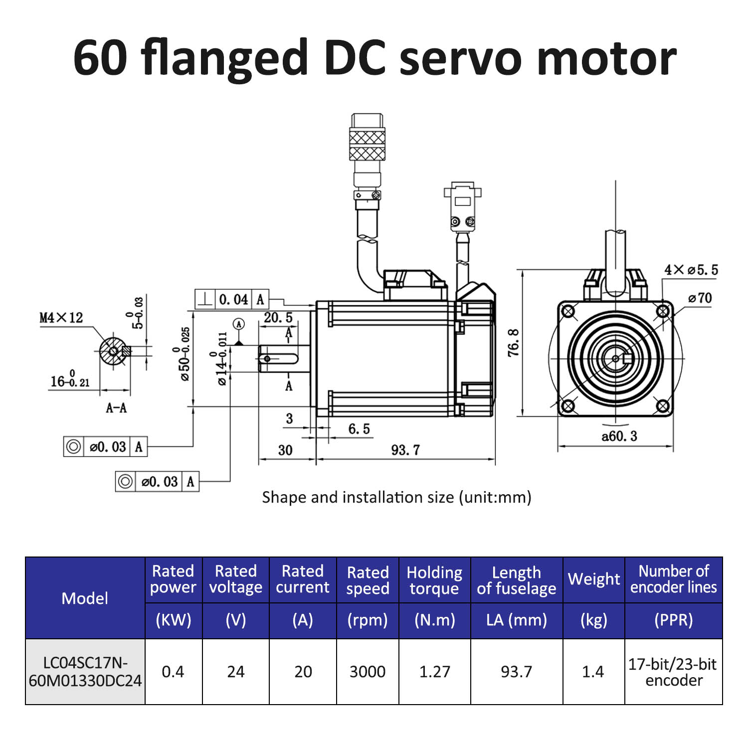 Pulse/RS485/CANopen/EtherCAT 60 FLANGED 200W/400W/600W Trealamh Tiománaithe Mótair Servo DC Íseal