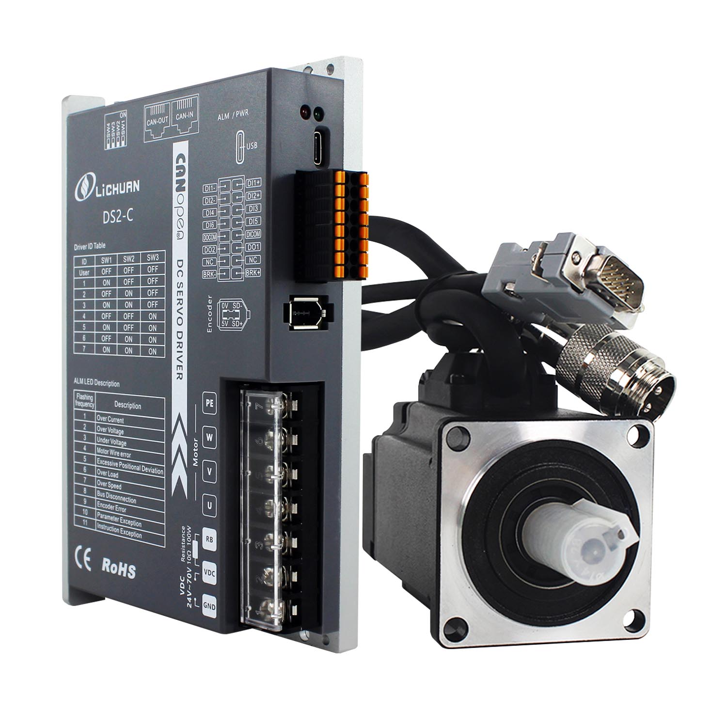 Pulse/RS485/CANopen/EtherCAT 40 FLANGED 100W Íseal-Voltais DC Servo Trealamh Tiománaithe Mótair